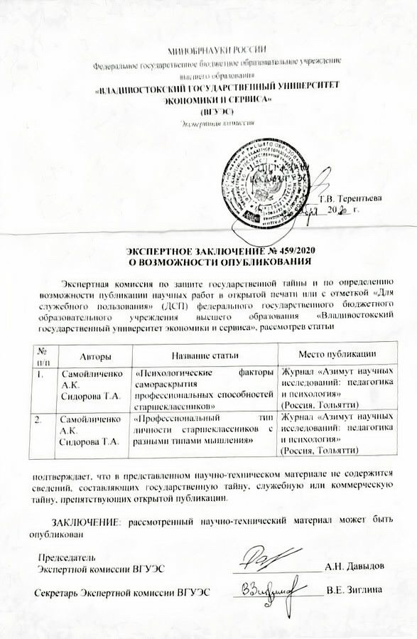 ПСИХОЛОГИЧЕСКИЕ ФАКТОРЫ САМОРАСКРЫТИЯ ПРОФЕССИОНАЛЬНЫХ СПОСОБНОСТЕЙ У СТАРШЕКЛАССНИКОВ
