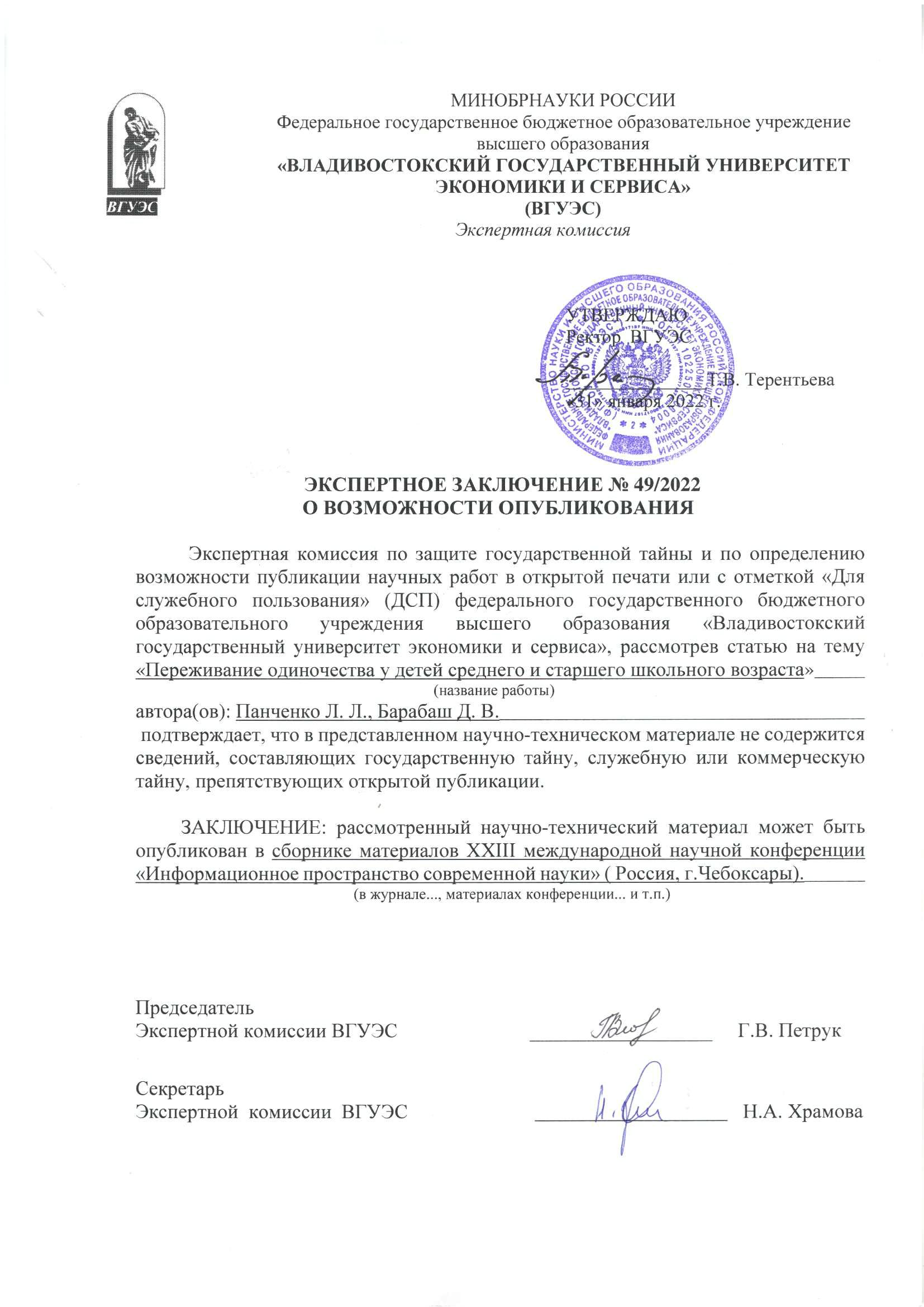 ПЕРЕЖИВАНИЕ ОДИНОЧЕСТВА У ДЕТЕЙ СРЕДНЕГО И СТАРШЕГО ШКОЛЬНОГО ВОЗРАСТА