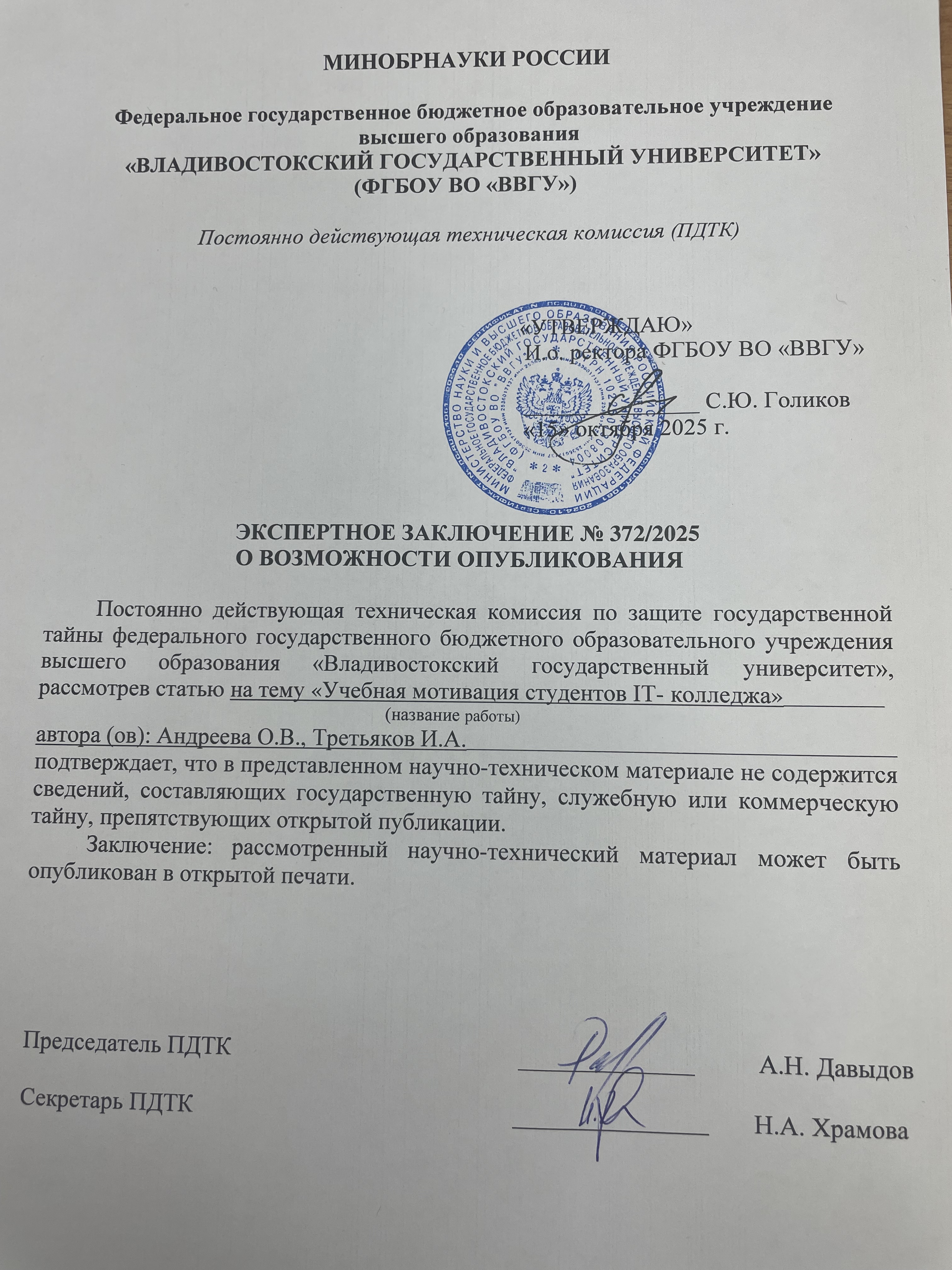 Учебная мотивация студентов IT-колледжа в связи с готовностью к профессиональному самоопределению