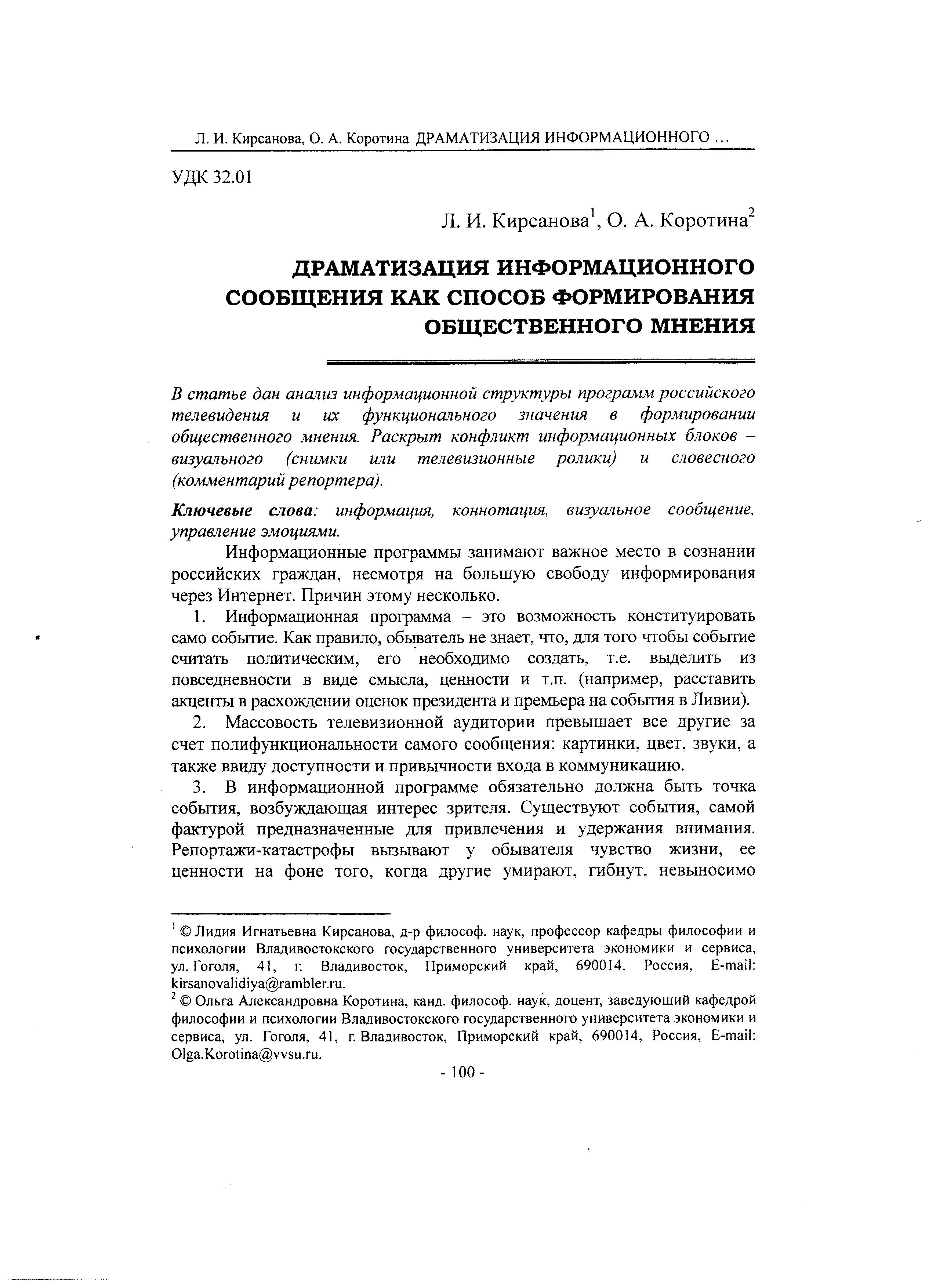 Драматизация информационного сообщения как способ формирования общественного мнения